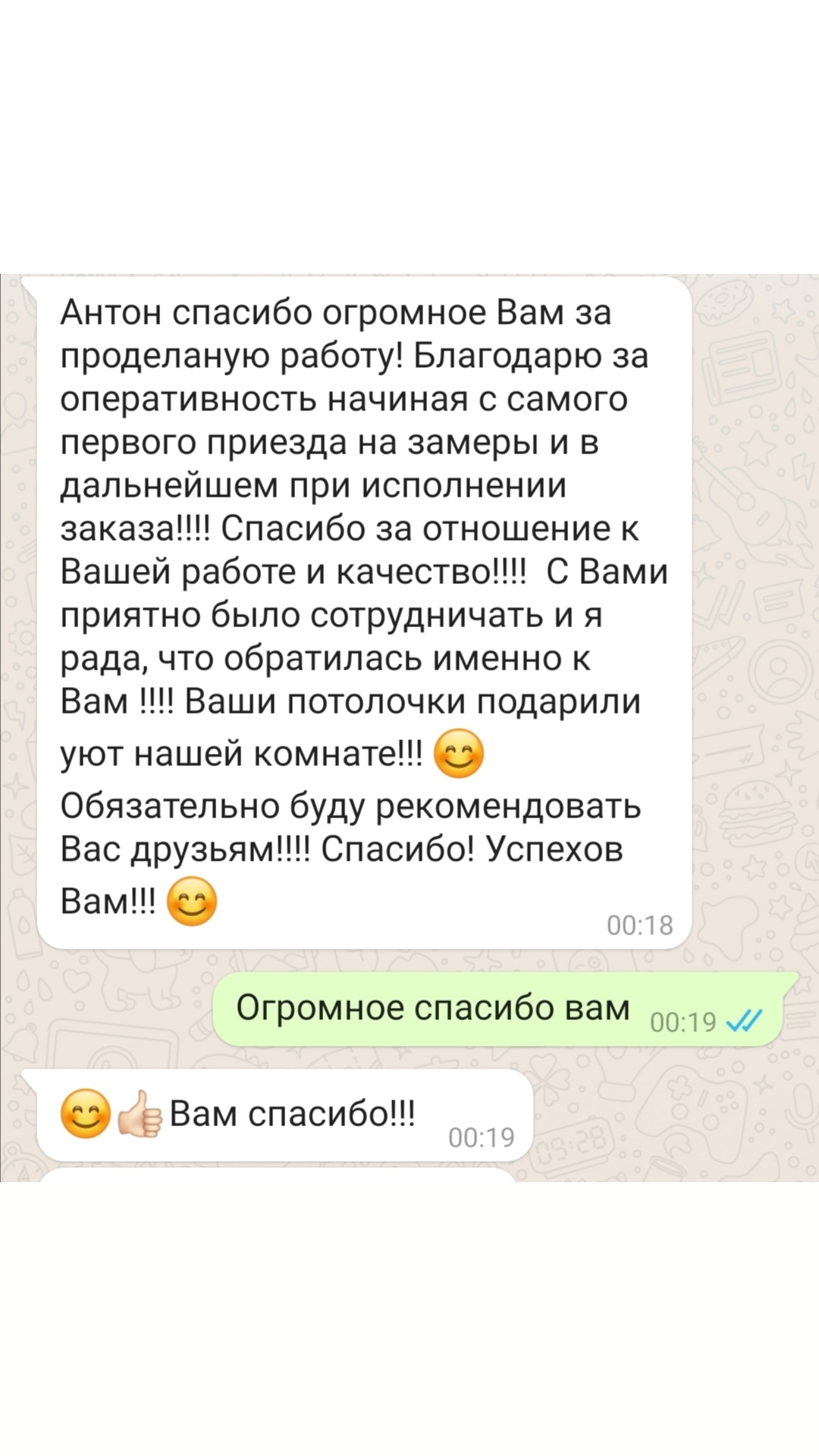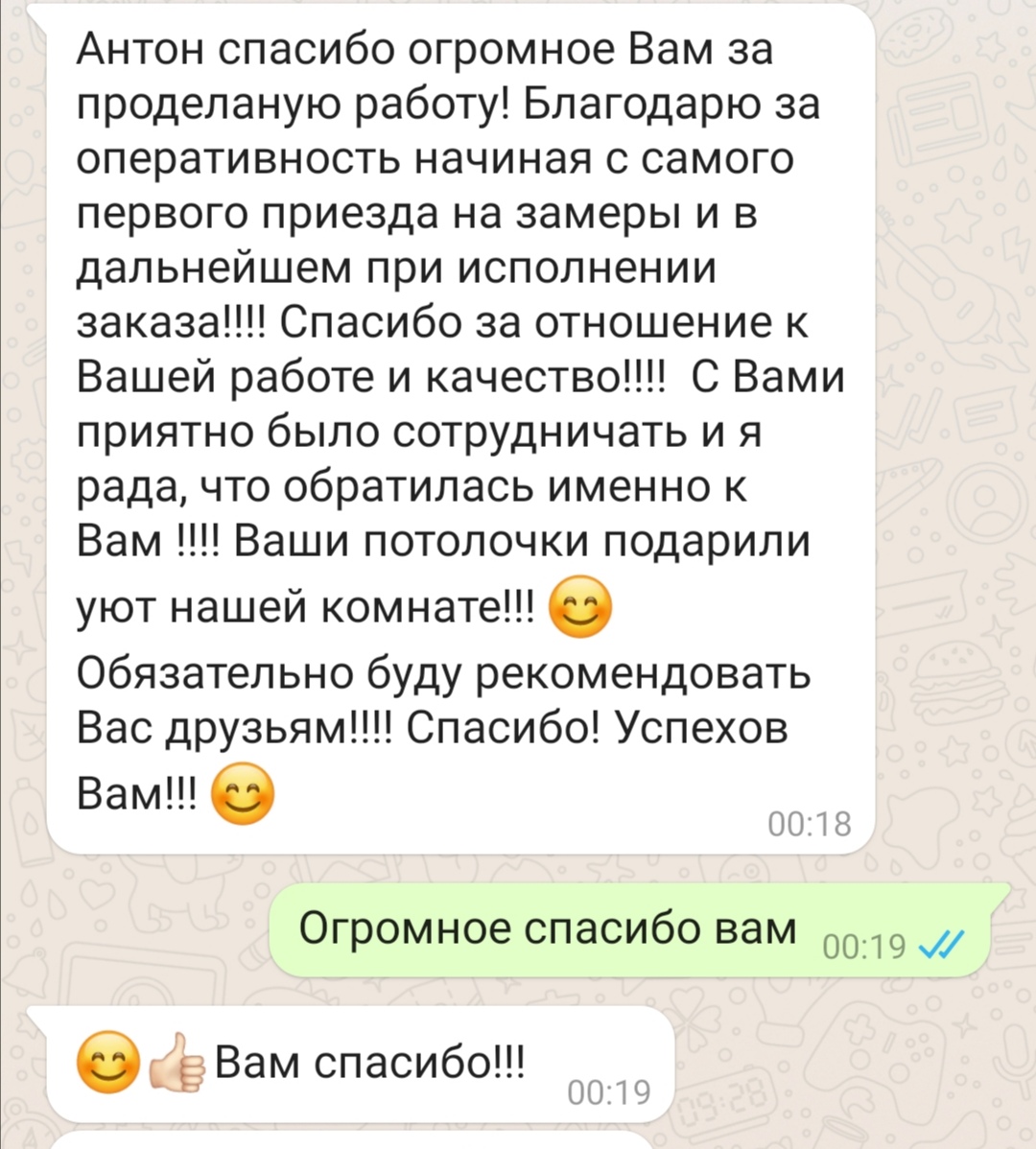 На странице готовых работ вы можете ознакомиться с уровнем качества и разнообразия покрытий, с помощью калькулятора онлайн просчитаете свой будущий потолок, а по телефону вызовите замерщика для уточнения стоимости полотна вместе с работой.
