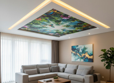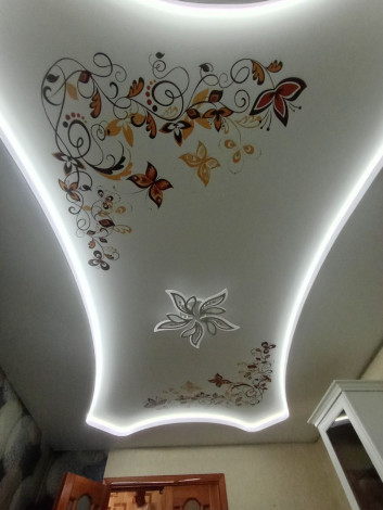 На натяжной потолок можно нанести любой рисунок, будь то красивый узор в центре комнаты, маленькая бабочка или цветочек в углу комнаты. Наши менеджеры с радостью помогут подобрать нужное Вам изображение, исходя из Ваших пожеланий! А так же Вы можете самостоятельно найти нужный Вам рисунок на сайте shutterstock.com.