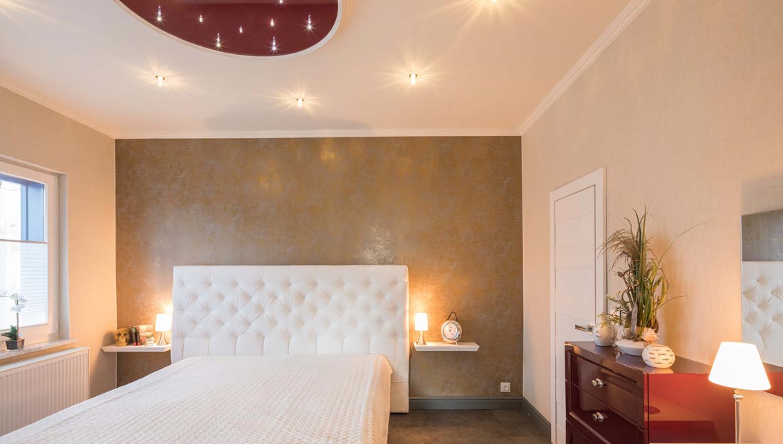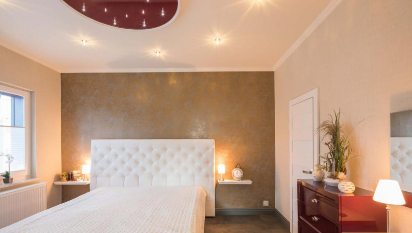 Почему натяжной потолок в спальной комнате – практичное решение?