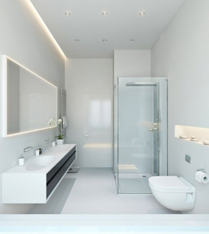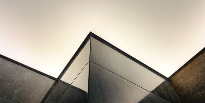 - Установка натяжных потолков максимально простая и быстрая, для оформления санузла даже большой площадью достаточно нескольких часов.